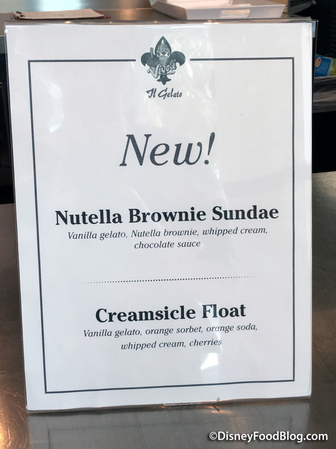 And here’s that sign we mentioned for the two new creations: The Nutella Brownie Sundae and the Creamsicle Float!