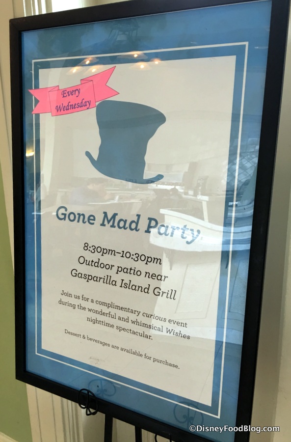 Remember, the Gone Mad Party is still happening at the Grand Floridian Resort just outside Gasparilla Island Grill.