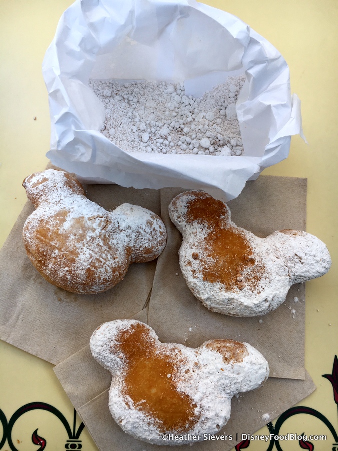 You could even follow Heather’s Pro Tip Bag Technique for adding extra powdered sugar. The bottom of the bags, of course, tend to have oodles of powdered sugar from the Beignets. And we don’t want to see it go to waste, now, do we? The thing is, the Beignets are hollow. Just break off an ear (sorry, Mickey!), and scoop that extra sugar right out of the bag…