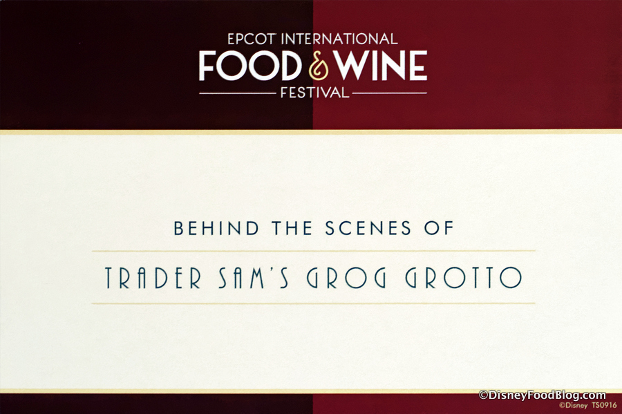 That’s right… we paid a visit to Trader Sam’s Grog Grotto to check out a new Epcot Food and Wine Festival Special Event that’s NOT happening at Epcot. While Signature Dining Events have long been held in and around various restaurants on property, this year is the first time that Special Events have expanded to Disney World Resorts. These debut offerings include Brunch with a Twist at Disney’s Grand Floridian Resort, The Secrets of Flavor at Disney’s Yacht Club, Culinary Adventures with a Master Chef at Disney’s Contemporary Resort, and the Special Event we’re reviewing today: Behind the Scenes of Trader Sam’s Grog Grotto at Disney’s Polynesian Village Resort.
