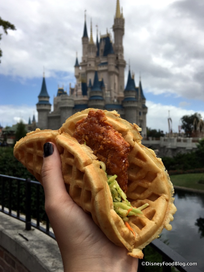 The main objective: Sleepy Hollow Refreshments in Liberty Square to find out if the Sweet and Spicy Chicken Waffle Sandwich was back on the menu.