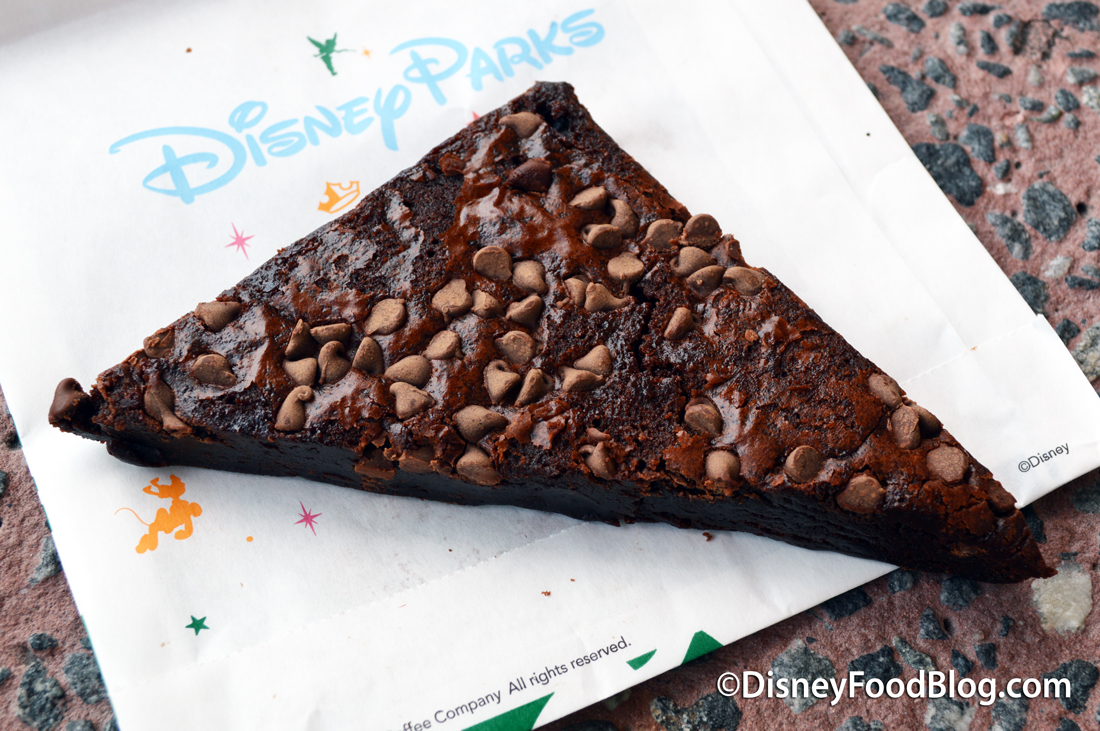 The triangular brownie is pretty large compared to the other baked sweets in the case. When we asked the Cast Member if these were any different than the original (aside from the nut issue), she told us these have actual espresso beans mixed into the batter!! Cue heavy breathing…