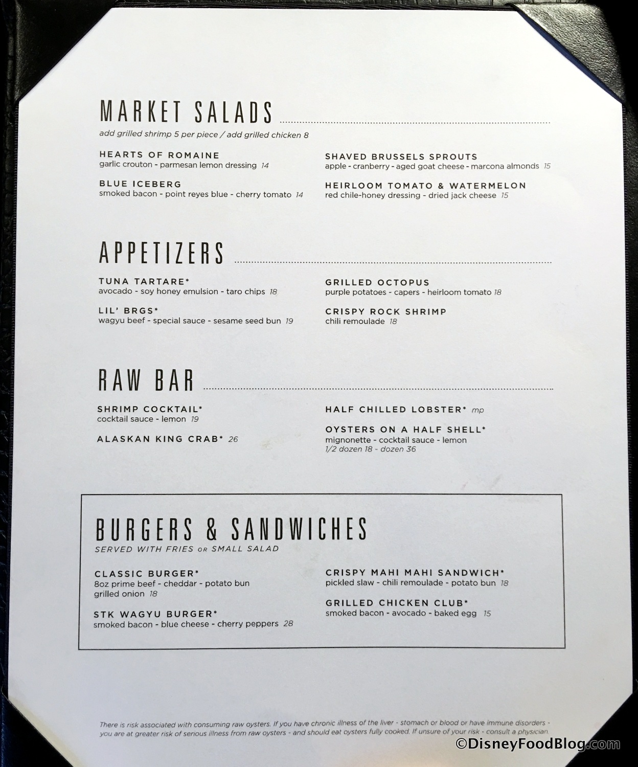 If you read our first review of STK, then much about the first page of the Lunch menu will look familiar to you.