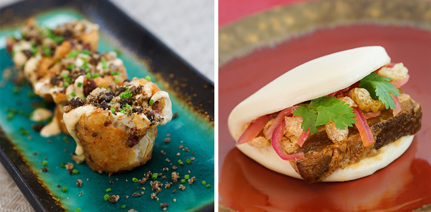 - Adobo Pork Bao with shaved red onion and crispy garlic chicharron