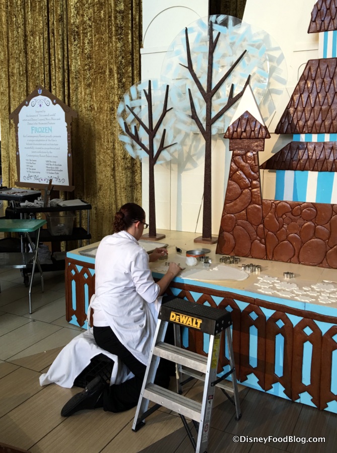 Of course, the Grand Floridian isn’t the only Deluxe Disney Resort preparing their larger-than-life Gingerbread creations. The Contemporary was also finalizing the scene for the annual Frozen Gingerbread Display on our recent trip!