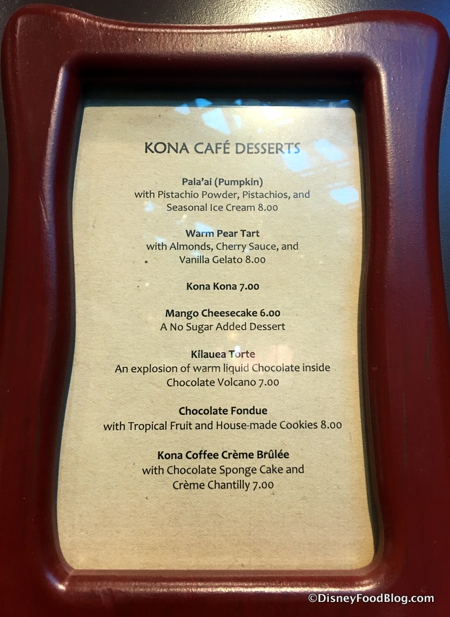 This is the Resort where you’ll find Kona Cafe, which has a few new desserts on the menu with the Pala’ai, Warm Pear Tart, and Kona Coffee Creme Brûlée.