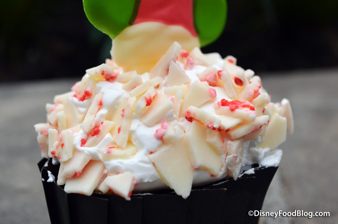 The Chocolate Cupcake comes frosted with Vanilla Buttercream Icing and White Chocolate Candy Cane Bark. Isn’t it so pretty?