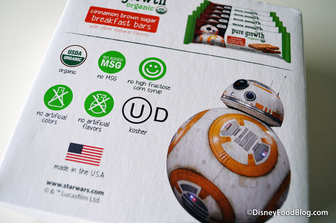 One of my favorite ways to save time and money at Disney is by bringing breakfast items and eating them on the way to the parks, and the BB-8 packaging on these cinnamon brown sugar bars makes it even more appealing!