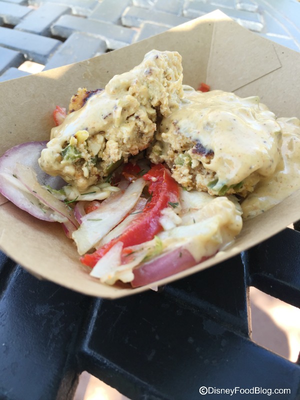 - Crabless Cake with Crispy Vegetable Slaw, Lemon Vinaigrette and Old Bay Remoulade (V) – $6.25, Vegetarian, DDP Snack Eligible