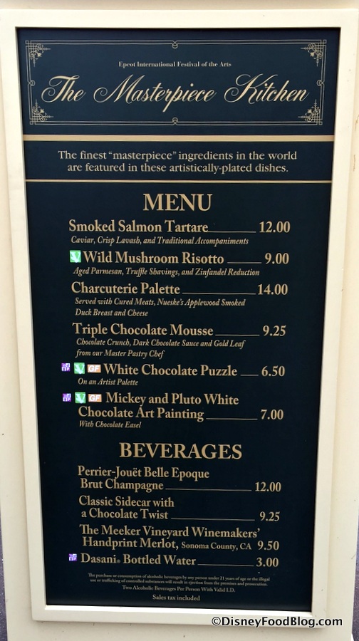 2017 Epcot Festival of the Arts Masterpiece Kitchen Menu
