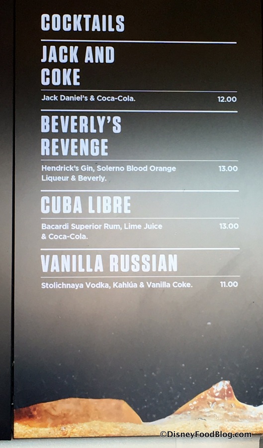 Beverly’s Revenge comes in at $13.00, which is a pretty standard price for drink menus around the World. And, FYI, alcohol/cocktails are now being served at the Coca-Cola Store starting at 1:00 p.m.