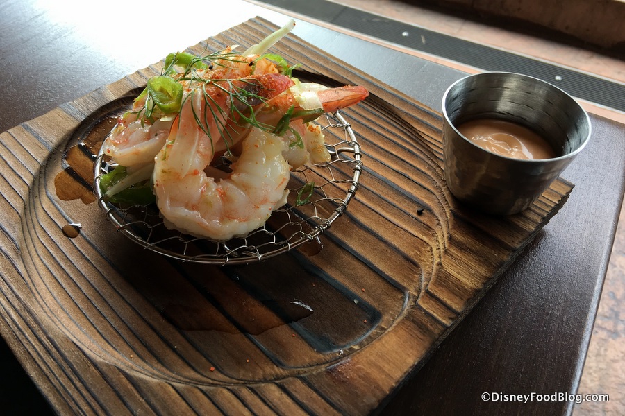 Finally, we chose the Shrimp on a Wire with Miso Lime Vinaigrette, togarashi, shishito peppers, and chili aioli.