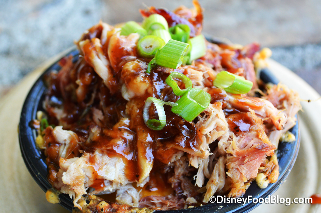 I was so trying to forget I had this last weekend, because I can’t even come close to anything here at home! I had the shrimp version about two hours before dinner at Tusker House as a snack, because I needed some energy to keep walking around Animal Kingdom, and this was the closest snack place. Oh, my. This was heaven on earth! I almost said forget Tuskers, so I could try the other two (glad I didn’t!). The shrimp were huge, and were nicely prepared, topped with That Sauce. And the mac and cheese? I didn’t really care that the pasta was a little overdone, because they were covered in CHEESE. And I don’t mean that nasty stuff you get in restaurants around town, I’m talking good, awesome, very well prepared, baked, lovely Cheese. All of it was GOOD. I had this the Sunday before this weekend and I sure wish I had a supersized bowl right now. Next time, I’m gonna try the pork version. And maybe have another bowl with the shrimp. *sigh*