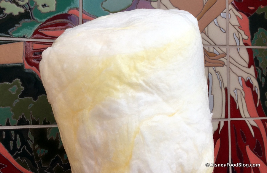 So we were pretty excited when we discovered Pineapple-Flavored Cotton Candy at Disney California Adventure while there for the DCA Food and Wine Festival. (You’ll recognize Pineapple-Flavored Cotton Candy by the white and pale yellow stripes.)
