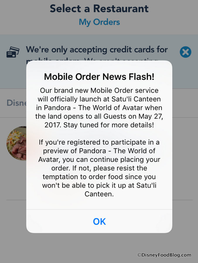 It’s important to note that Mobile Order does NOT accept Disney Dining Plan credits (or Disney Gift Cards) at this time. Though this will likely change in the future, only credit card payment is accepted at the publishing time of this post.