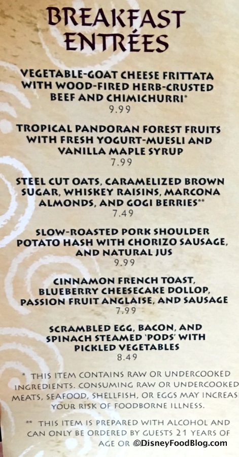 Are they still serving breakfast at Satu’li Canteen? I looked on Disney’s website and there wasn’t a breakfast menu.