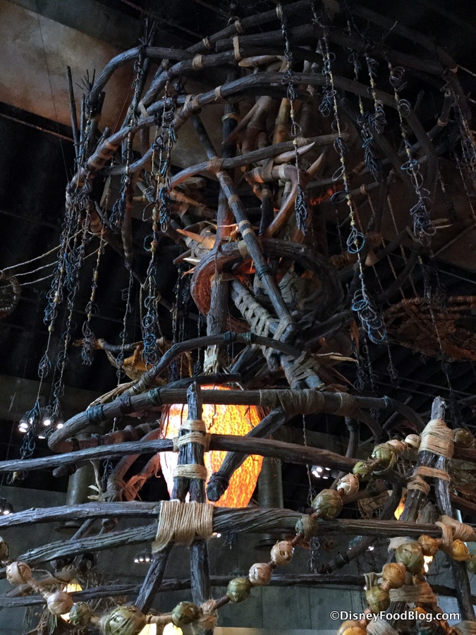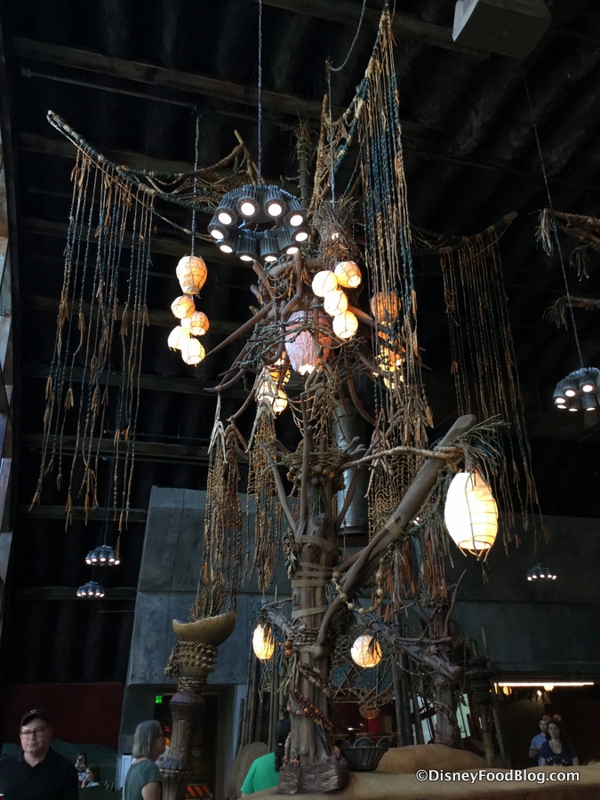 In addition to offering food, Satu’li Canteen is also a museum of sorts, featuring Na’vi cultural items and artwork which surround and hang high above guests as they dine.