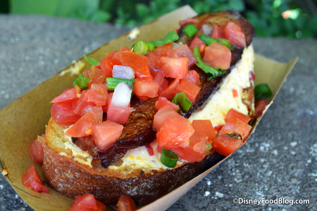 The diced tomato mixture was fresh and popped with tangy flavor, perfectly complementing the rich bacon and pimento cheese.