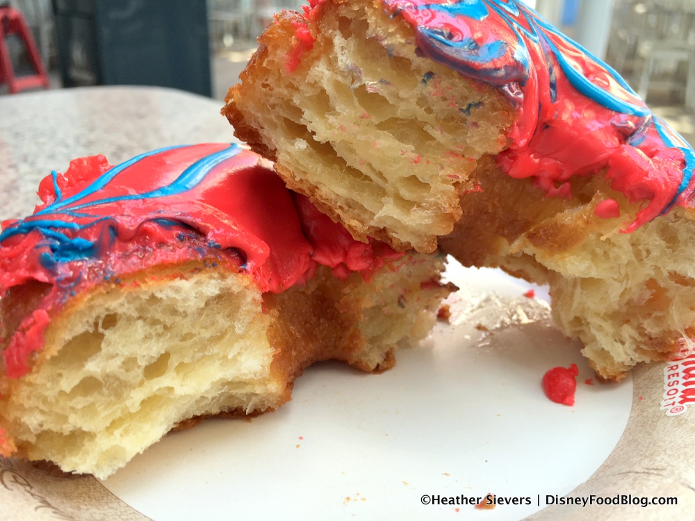 The second Summer of Heroes-themed donut is the Spider Bite. And it’s another cronut, y’all! But this one has a little, uh, bite — for real! We love that it’s Spiderman red and blue. It’s not as big as the Gamma Sized, but it’s still a generous portion.