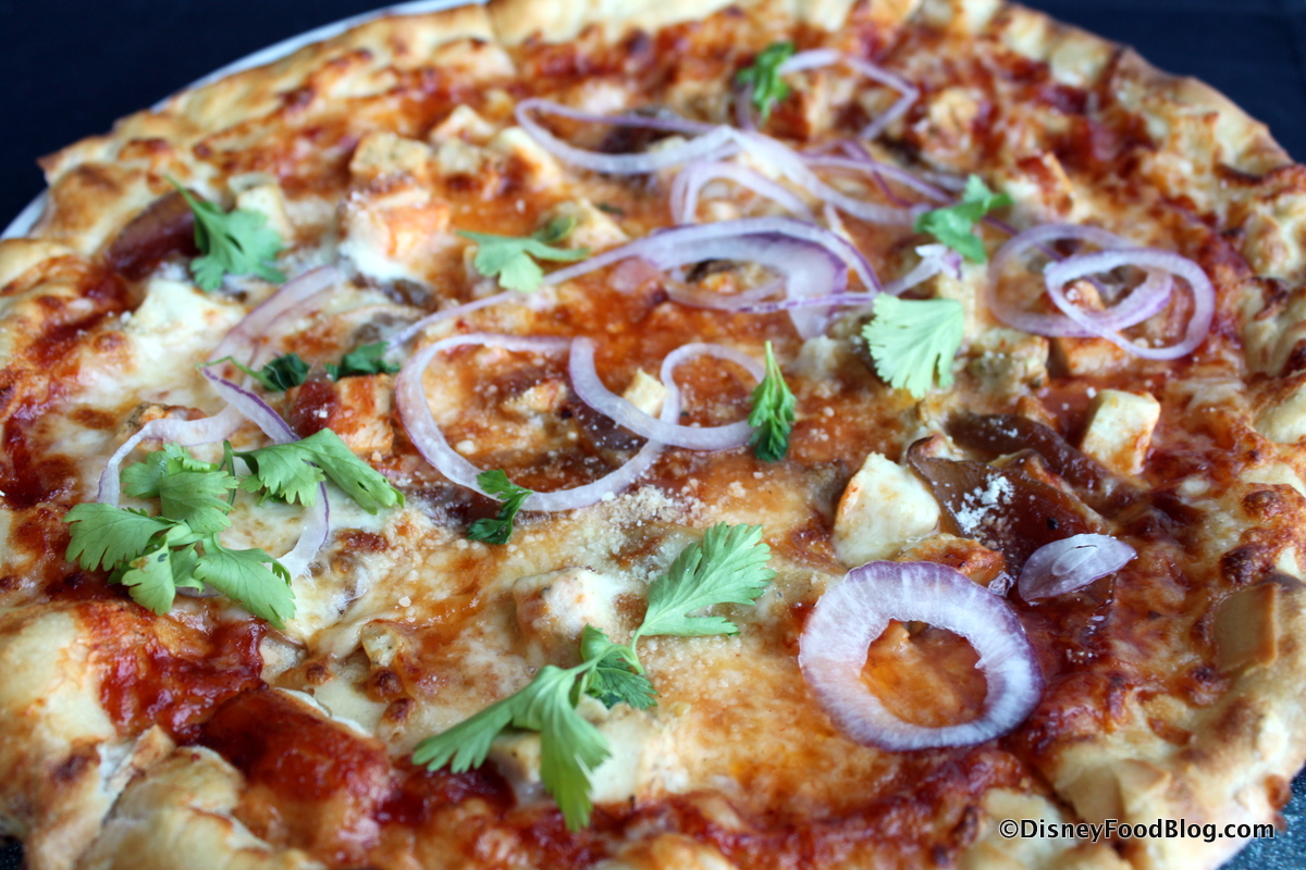 And since Chef Puck is known as the original creator of BBQ Chicken Pizza, I had to get in on that, too! BBQ chicken, caramelized onions, and mozzarella. I ordered it as is for you, even though the final topper is my nemesis: cilantro.