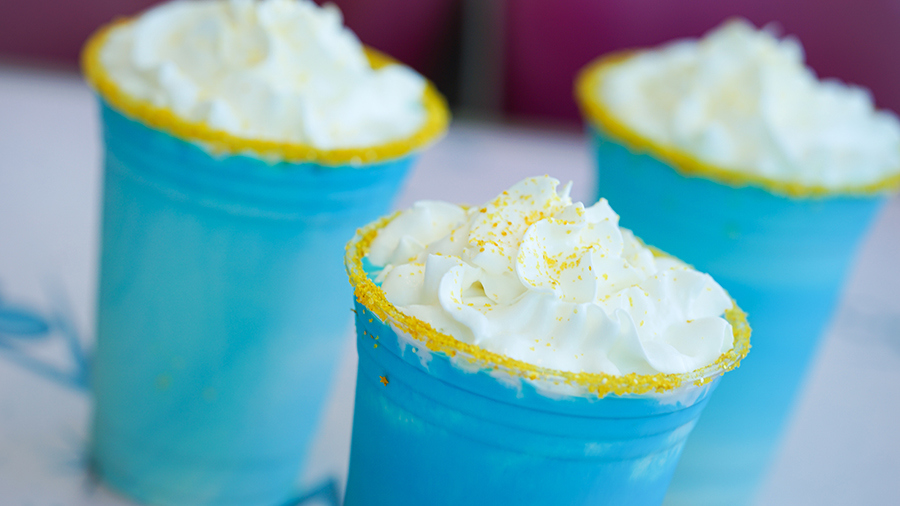 And the blue raspberry Cool Dinoco Blue Shake — also at Flo’s — comes topped with whipped cream and yellow sugar sprinkles.