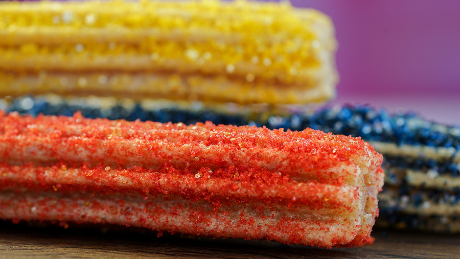 Racing Stripe Churros are available in Red, Blue or Yellow at Cozy Cone Motel.