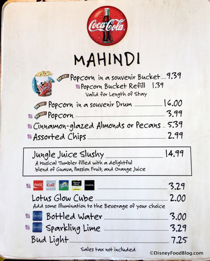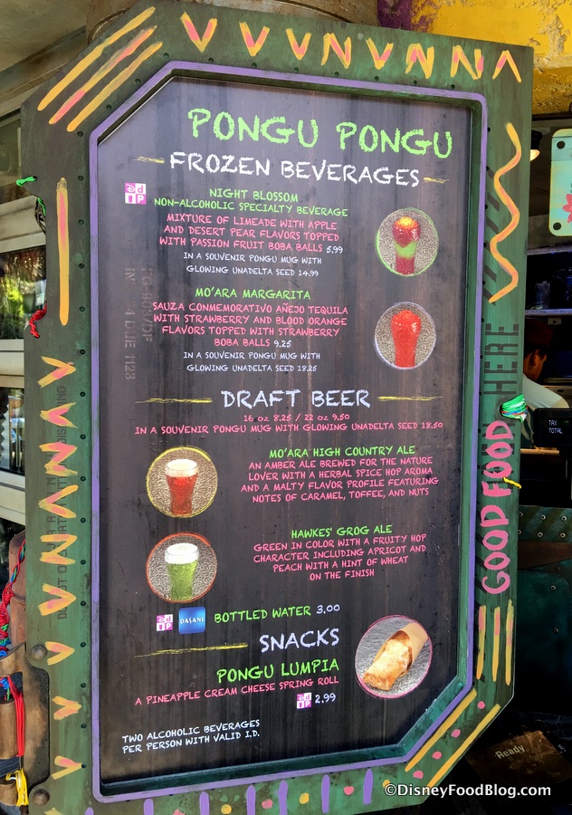 Returning as mysteriously as it vanished a few months ago, we were pumped to see this freezy version of POG Juice (Passion Fruit, Orange, and Guava) back in Africa’s Harambe Village. As before, you’ll only see it listed on the main menu with the inclusion of the Musical Tumbler.