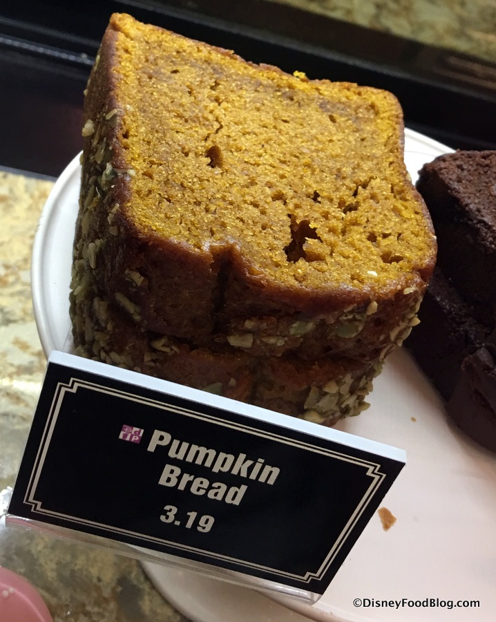 Find Pumpkin Bread back again at Creature Comforts (and perhaps your local Starbucks, too?). (And FYI, we found pumpkin and pecan tarts later in the day at one of the Disney resorts…so if you’re longing for Fall temperatures and flavors, they’re on their way!)