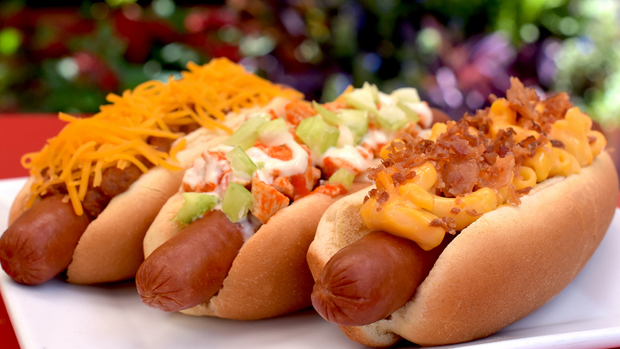 This offering is in addition to the recent arrival of Hand-Dipped Corn Dogs in the Magic Kingdom, found at Sleepy Hollow. If you’re celebrating the Big Day in a different park ;-D, your Hot Dog stops include (but aren’t limited to) Min & Bill’s Dockside Diner in Hollywood Studios and Refreshment Cool Post in Epcot. But don’t forget that Animal Kingdom’s Restaurantosaurus boasts a Premium Toppings Bar to top your hot dog, so right after Casey’s, Restaurantosaurus tops our list.