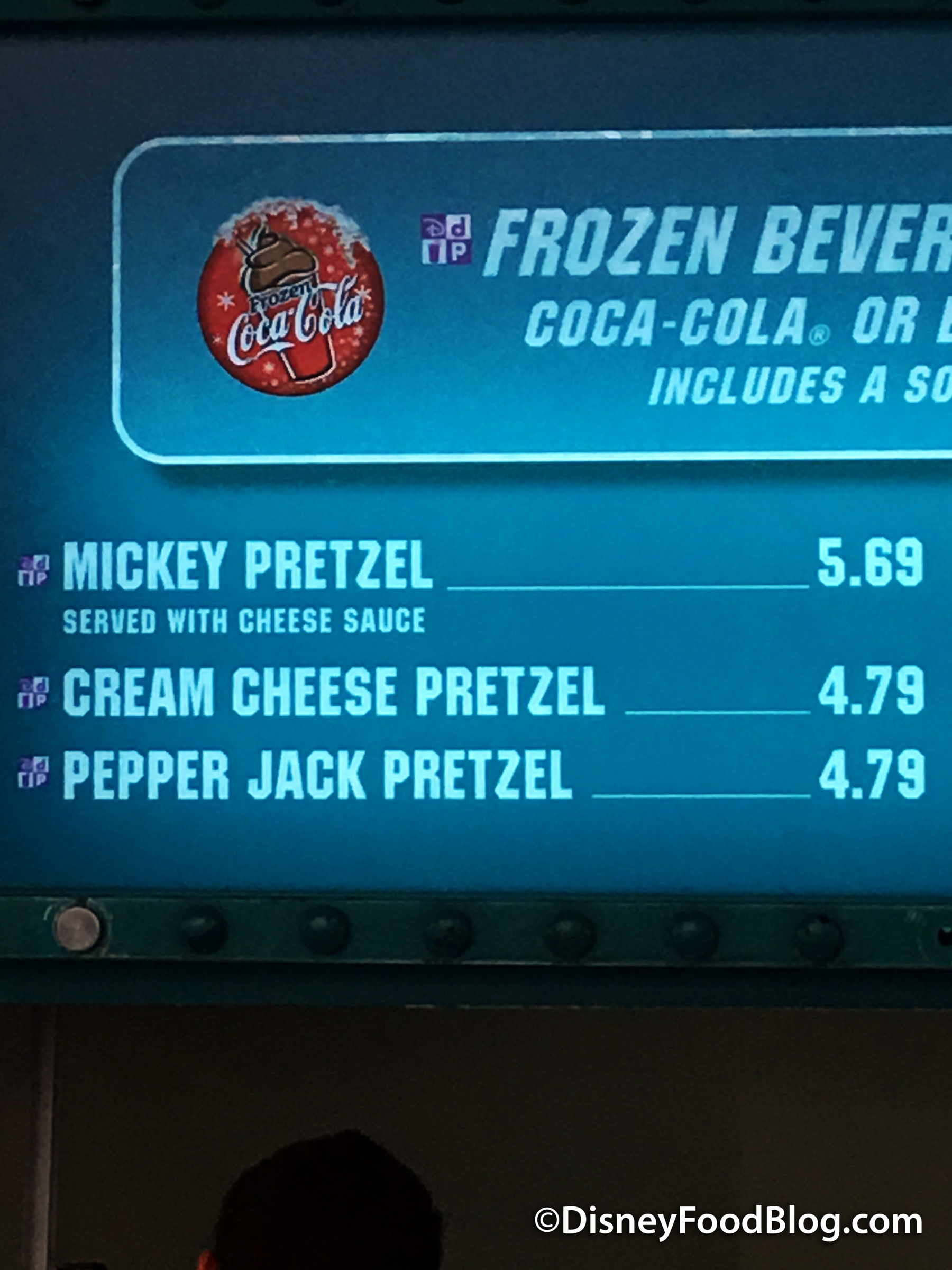 You can get your Mickey Pretzel pretty much everywhere in Walt Disney World (and Disneyland, for that matter), and it comes with cheese in just about every location. It costs you $5.69 or a Disney Dining Plan snack credit.