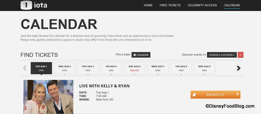 In order to join the Wait List, start by visiting the Home Calendar for 1iota, the Free Tickets hosting site. The link provided will send you to the following view: