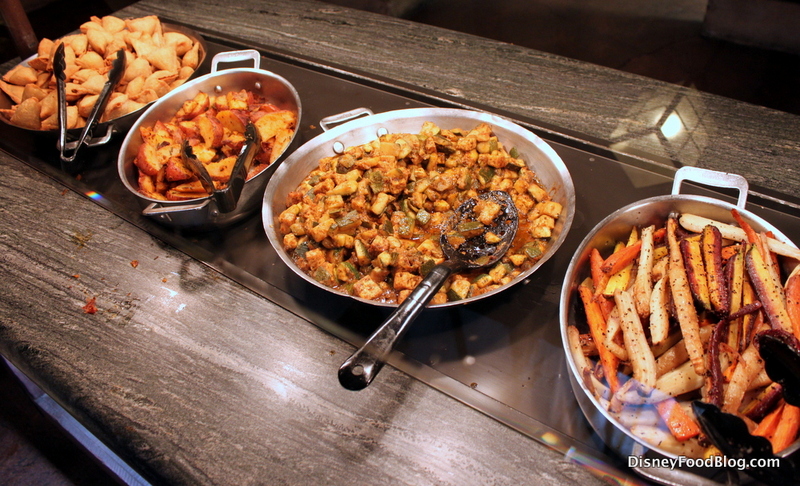 The buffet restaurant has been around for quite some time now, but I’ve continued to think of it as a hidden gem. Not only does it offer a character dining experience — and now, you can dine with your Disney friends for breakfast, lunch, and dinner — but the menu is also more interesting than most that you’ll find in Disney buffets.