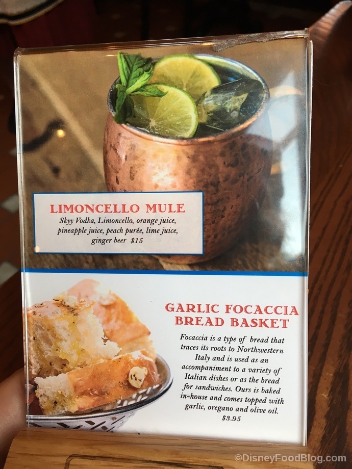 Seriously, I would, but it would take too long. Since this Table Service restaurant opened in Epcot’s Italy Pavilion seven years ago, I’ve been among its biggest fans. I love the decor, with those massive pizza ovens named for Italian volcanoes, the huge open space with arches and chandeliers, and the colorful frescoes on the walls and ceilings.
