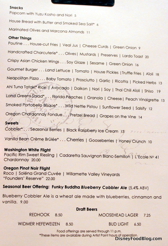 The little asterisk at the bottom of the menu lets loungers know that some of the items are coming out of the kitchen of neighboring restaurant, Artist Point, giving guests the chance to enjoy some Signature restaurant bites right from the lounge. Nice!
