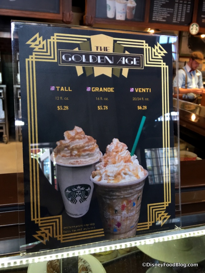 But The Trolley Car has something we haven’t seen at the other in-parks Starbucks locations… yet. It has its very own specialty drink: The Golden Age!