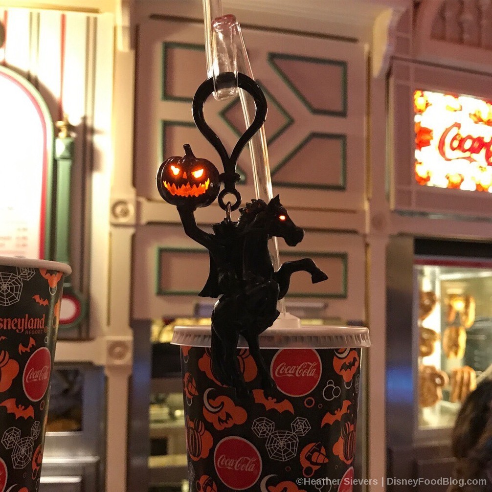 Our Disneyland correspondent Heather Sievers (who loves all things Halloween and can be found over on Instagram @DiningInDisney) snagged a straw-and-clip so we could all admire its spooky perfection. Look at the details! The mane! The tail! The pumpkin head held aloft as the Headless Horseman takes his midnight ride!