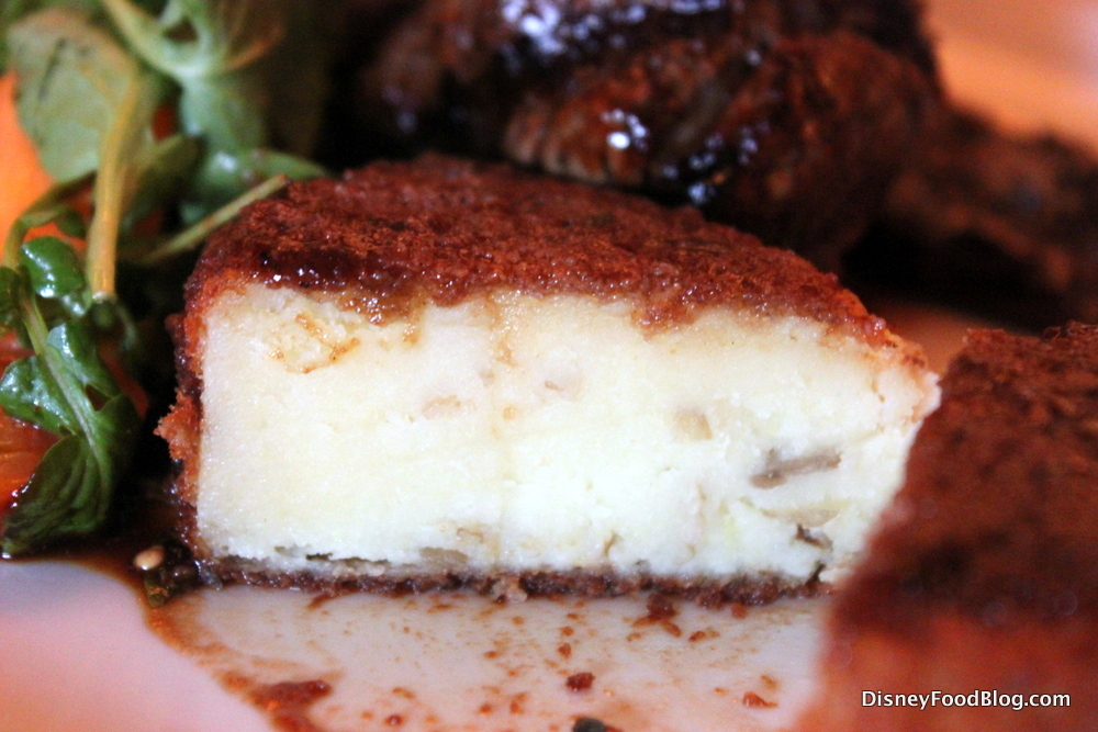 A cross section of the potato coquette shows a creamy potato center and a lovely golden crust. The flavor on this was pretty great and I thought it was a fun addition to the dish. There’s only so much you can do with potatoes, you know, and the filet is always served with potato; so it’s fun to see what new version they come up with. This one’s a winner.