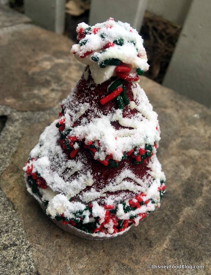 The Prep and Landing Gingerbread Cupcake is popping up at Counter Service spots including ABC Commissary, Rosie’s All-American Cafe, Catalina Eddie’s, Sweet Spells, and The Trolley Car Cafe for $5.99 (or a snack credit on the Disney Dining Plan).