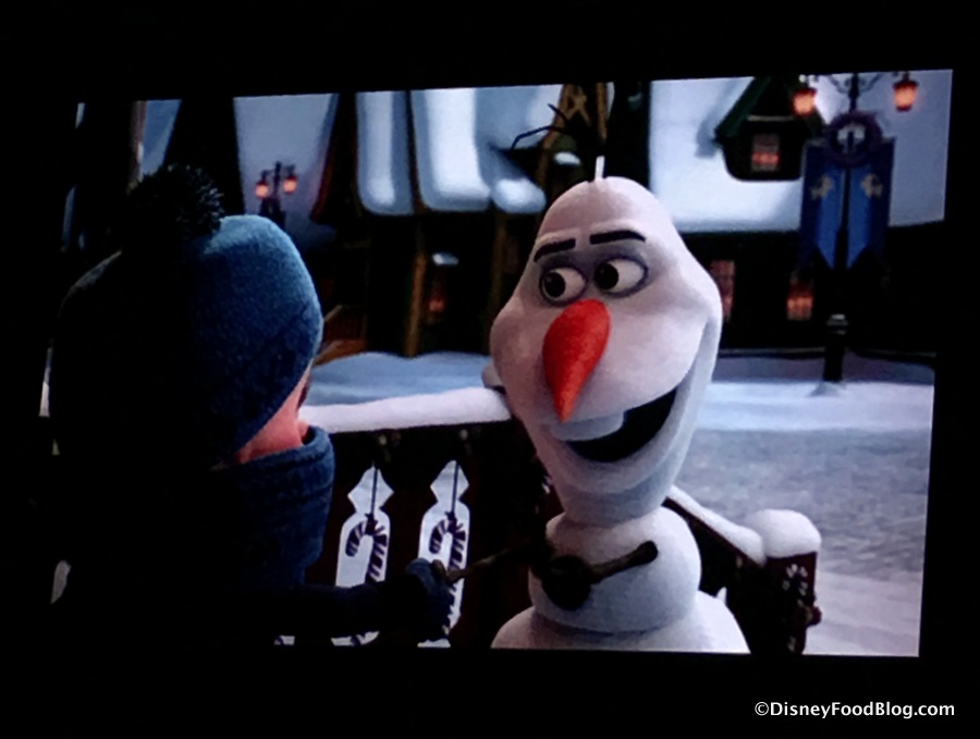 Olaf makes an appearance on screen (and in a LOT of the holiday snacks at the Studios), too!