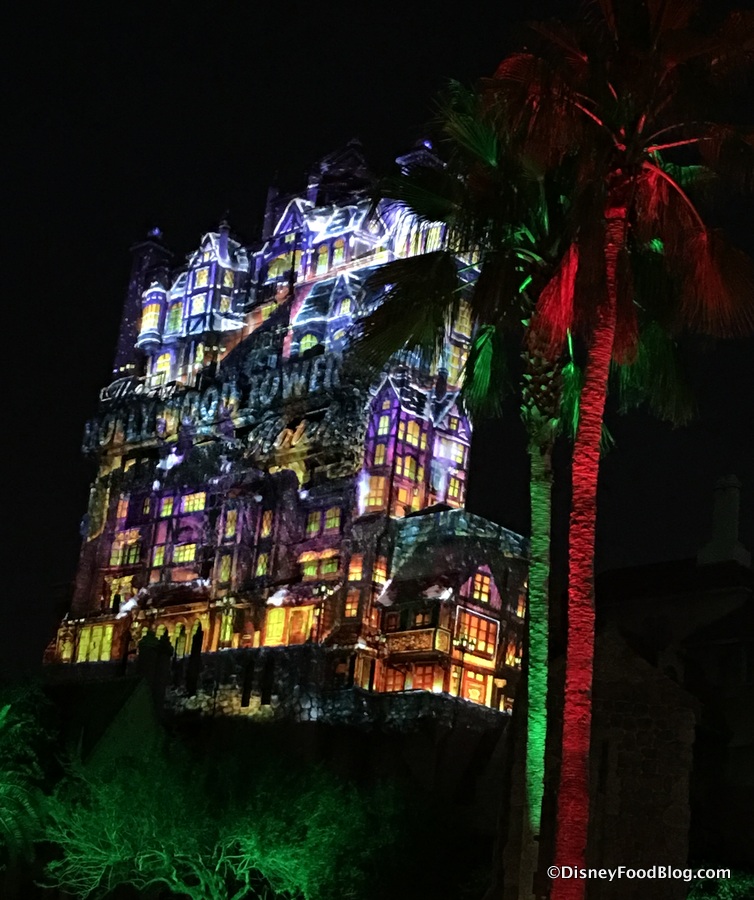 Your eyes will lift towards the Hollywood Tower Hotel (The Twilight Zone Tower of Terror) where projections will make things a lot more festive… and much less terrorizing 😉 .