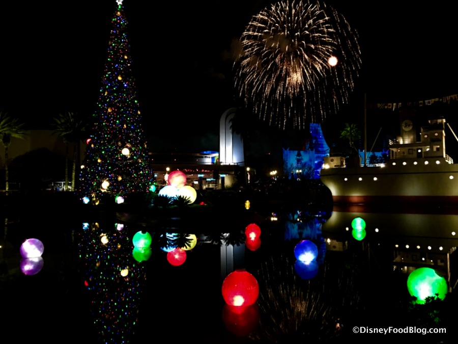 Not only is Echo Lake completely full again (coming back from its refurbishment that took place throughout early fall), it’s also THE place to see the Hollywood Studios Christmas Tree, and take in all the new extra-large ornaments dotting the lake.