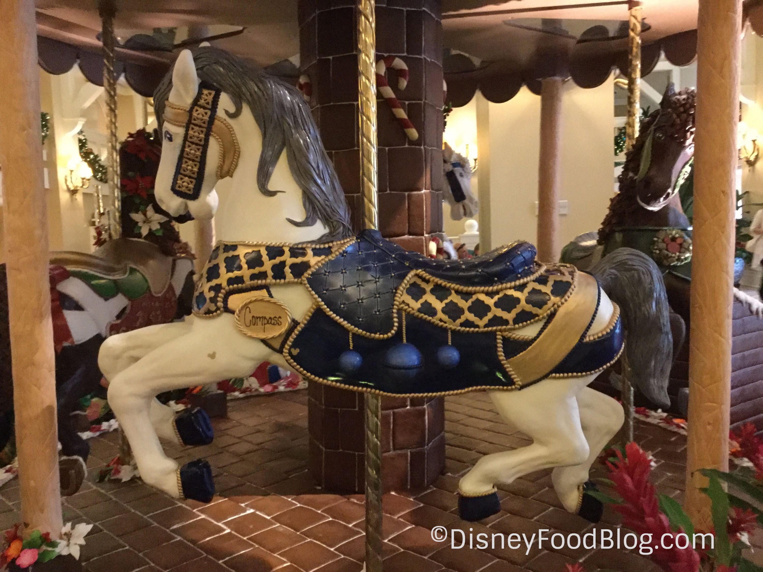 Unlike most of the Gingerbread Displays around Disney World which sell treats directly next to the display (or directly INSIDE OF, in the case of the Grand Floridian Gingerbread House!), the Carousel takes up enough space in the Beach Club’s lobby that the treats are located in the Beach Club Marketplace instead. As of yet, there’s only one unit of treats.