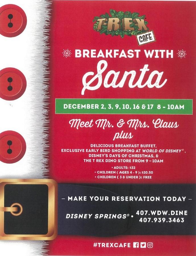 Santa Claus and the Mrs. will once again be joining guests for breakfast at T-Rex Cafe this December!