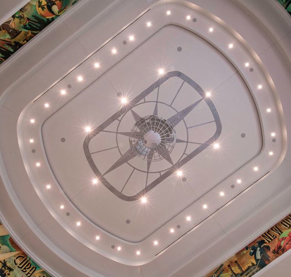 The vaulted ceilings of the former departure lounge remain as part of the main dining room, offering great views of Lake Buena Vista, which guests can enjoy along with Sicilian cuisine.