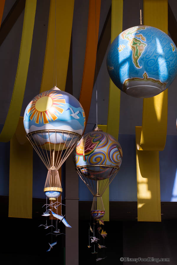 Walkways line the perimeter walls inside the building and lead you down to the pavilion’s three levels, which hosts Living with the Land, Soarin’, and Sunshine Seasons (one of our favorite counter service spots) on the bottom. There’s also an elevator if you’d prefer it to walking.
