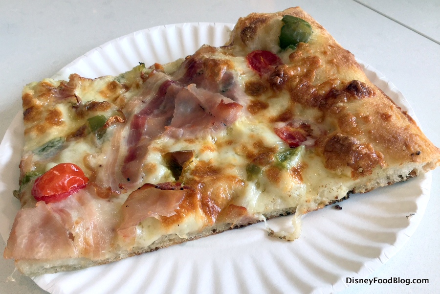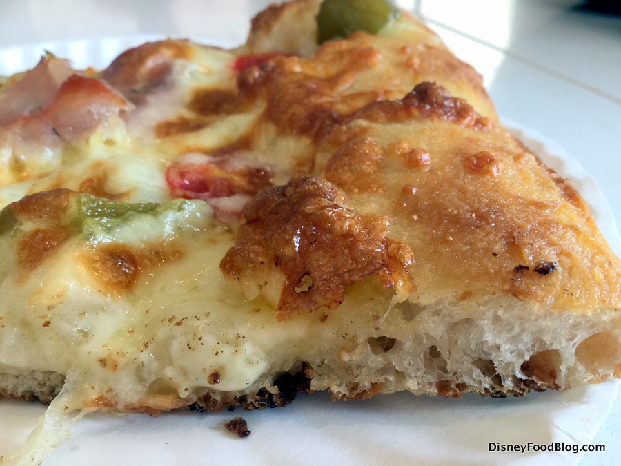 My daughter had the plain triangle cheese and said it was as good as Via Napoli in Epcot, which is a favorite of ours. I had the vegetable. It consisted of artichoke, asparagus, onion and cherry tomatoes. Delicious. I would eat here again! I agree with the comments about the uncomfortable seating. Either shorter stools or higher tables are needed.