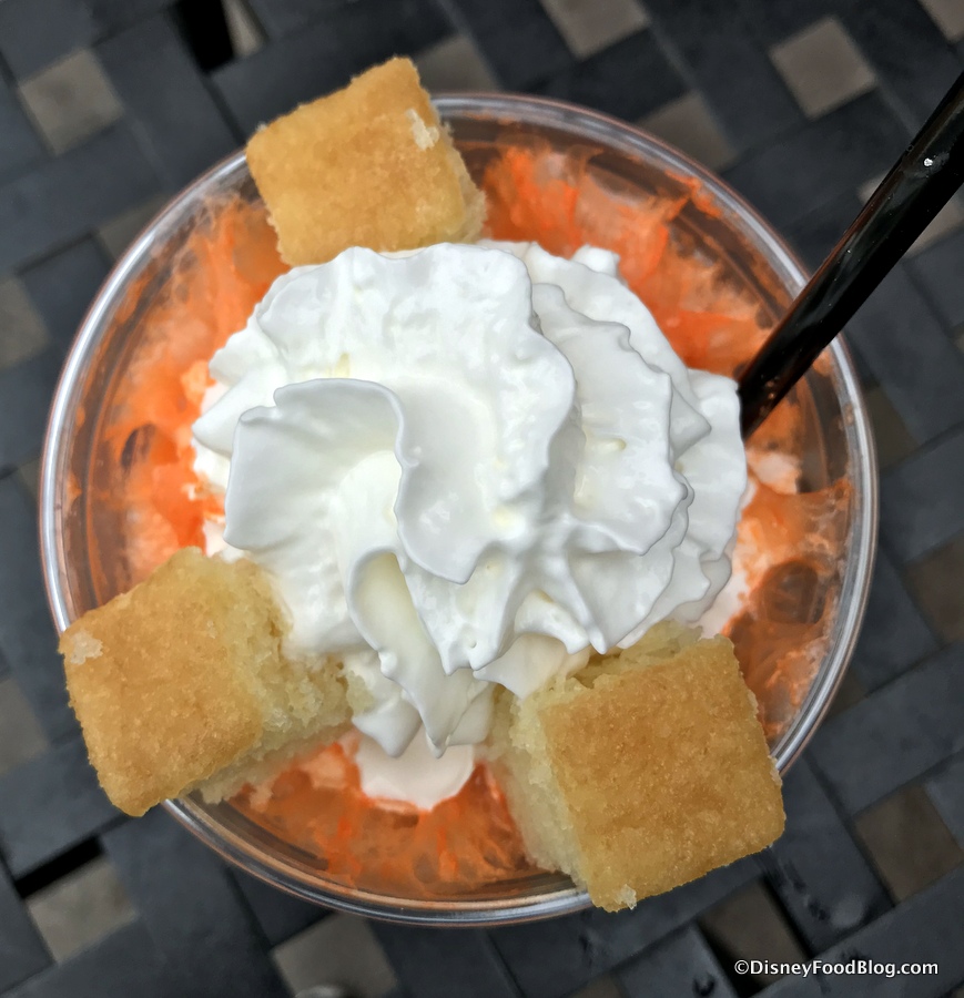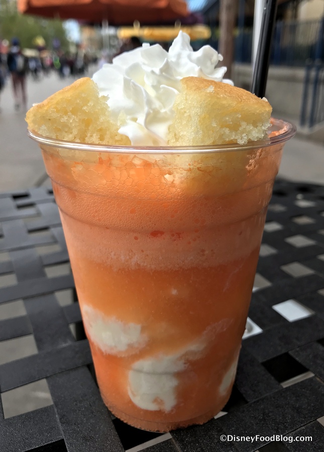 - Orange-Vanilla Cream Float with Whipped Cream (non-alcoholic) – $6.50 ($10.50 in souvenir tumbler)