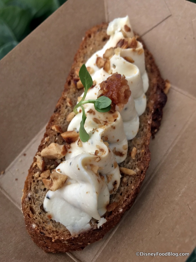 - Goat Cheese Tartine Fromage Blanc Tartine with Rosemary and Hazelnuts (V) – $4.50