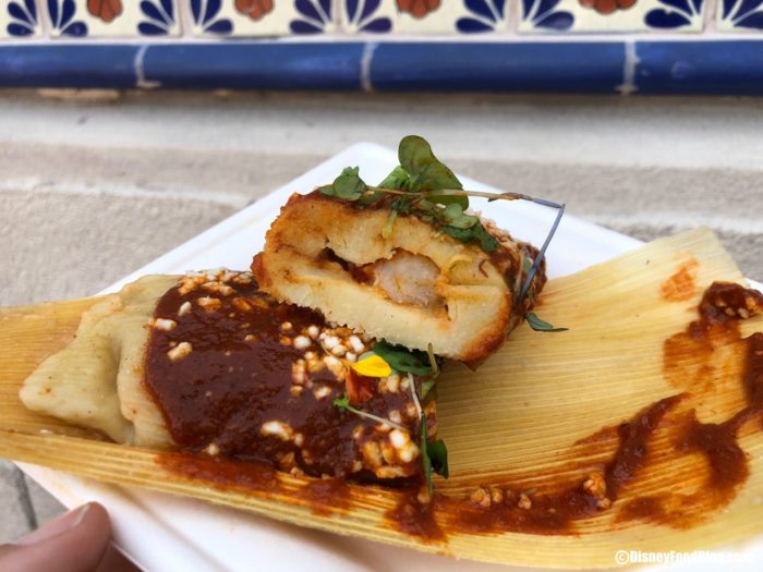 - Tamal de Camarón: Corn Tamal stuffed with Guajillo-marinated Shrimp topped with Mole Rojo and Shredded Cotija Cheese – $6.65, DDP Snack Credit Eligible