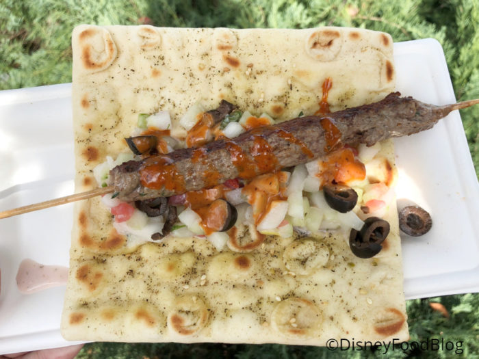 - Grilled Lamb Kefta Kebab with Whole Wheat Pita, Cucumber, Olives, Tomatoes, Mint Yogurt Sauce and Harissa-cilantro Dressing — $8.00, DDP Snack Credit Eligible